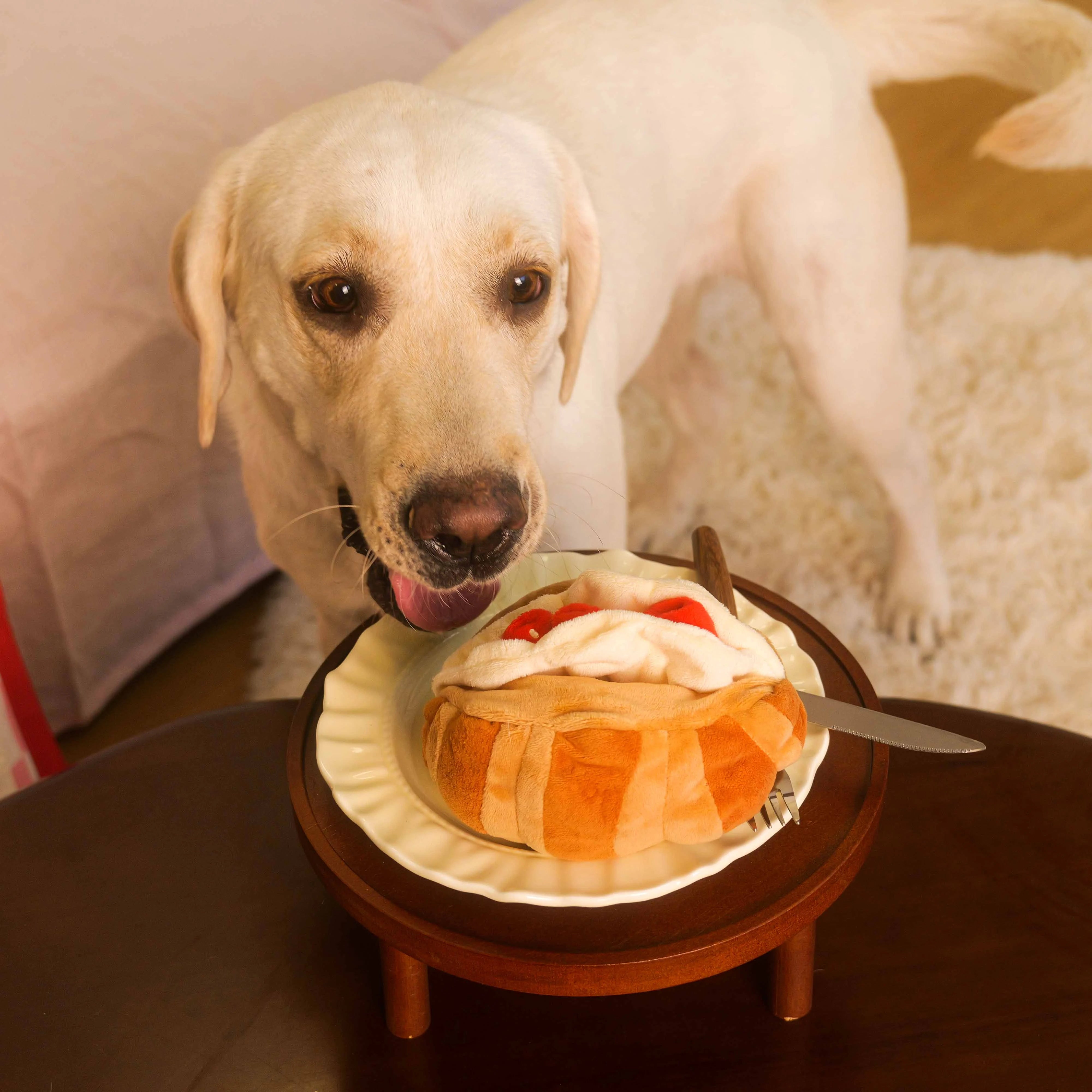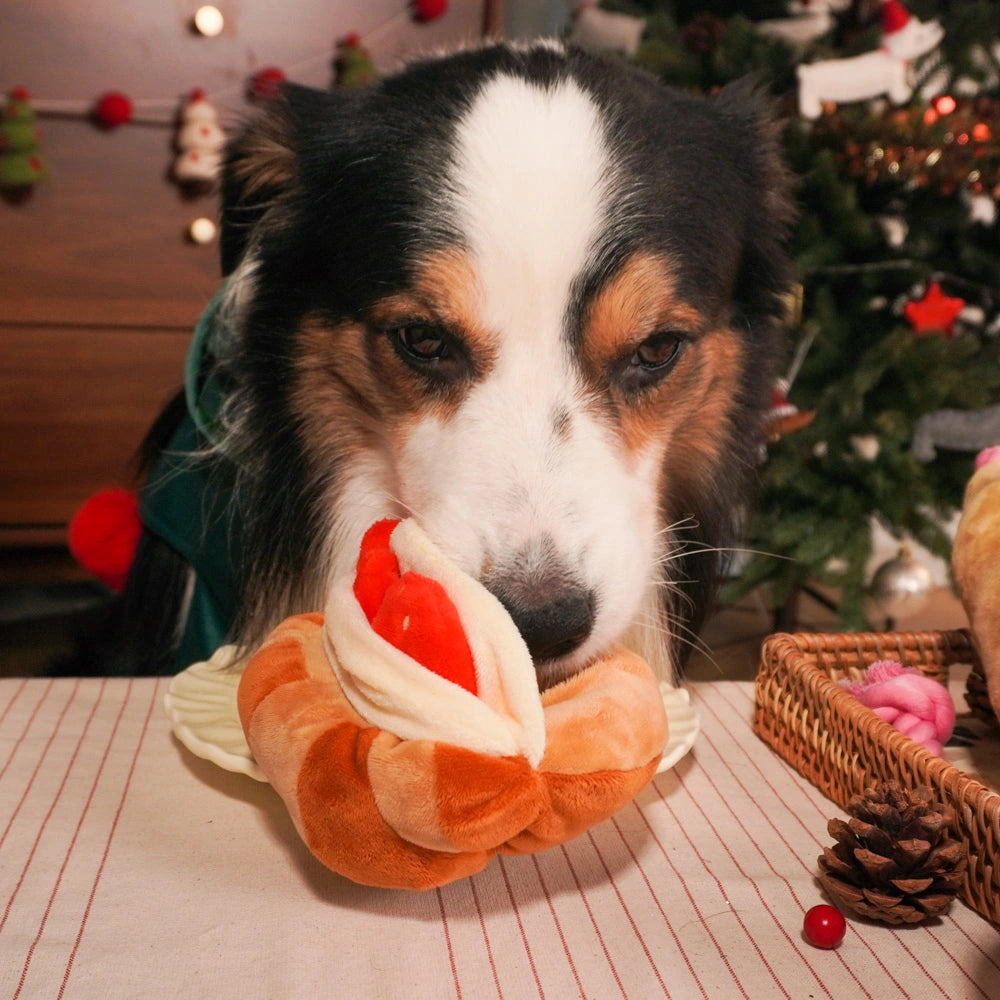 Strawberry Croissant Plush Dog Toy – Chew & Treat Hiding Interactive Toy