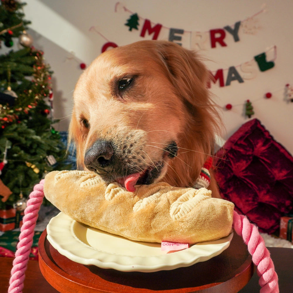 Tuggy Baguette Plush Dog Toy – Chew, Crinkle & Rope Interactive Toy