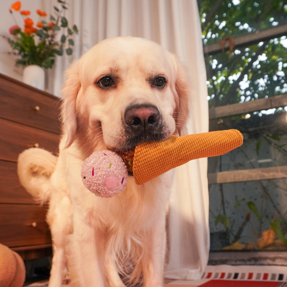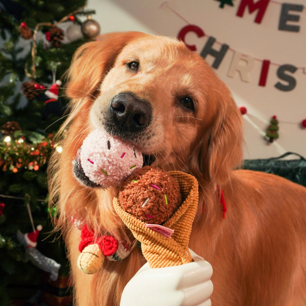Ice Cream Plush Dog Toy 3-in-1 Chew, Squeaky & Treat Hiding Interactive Toy