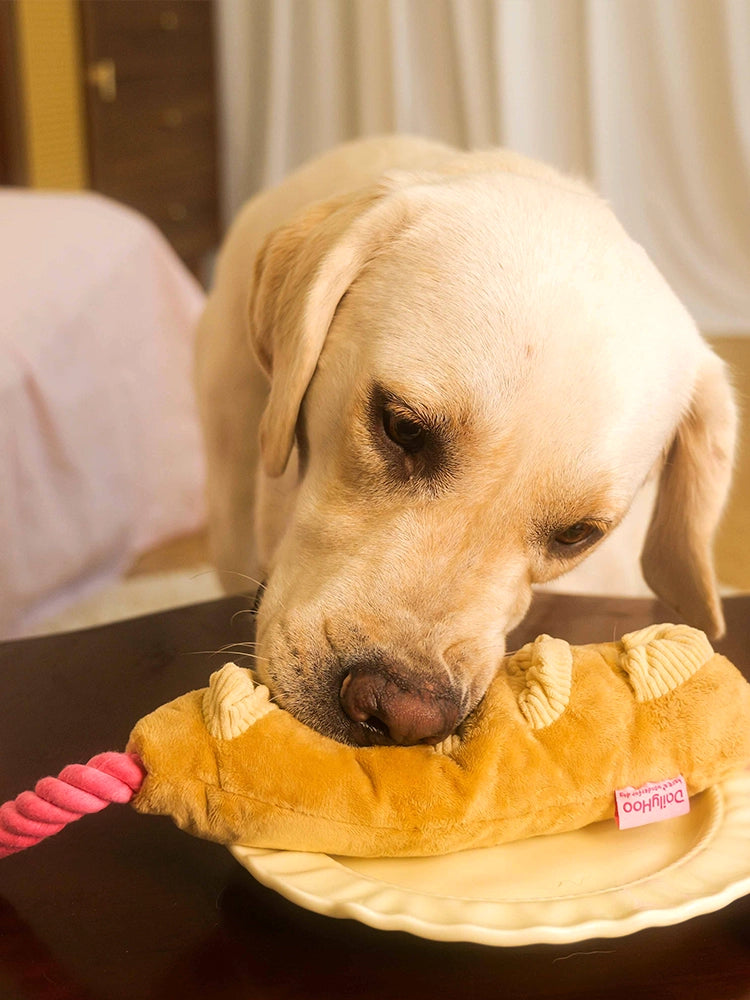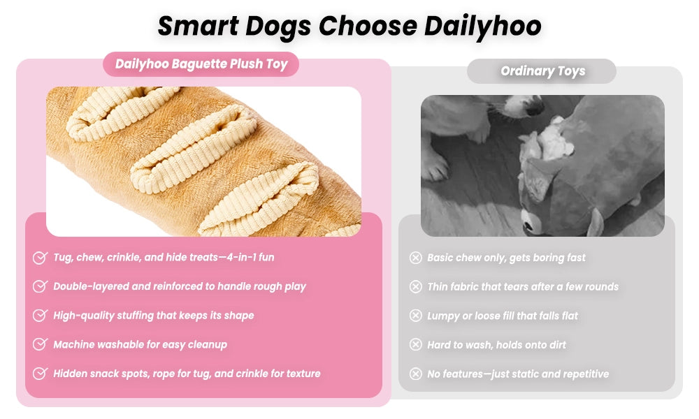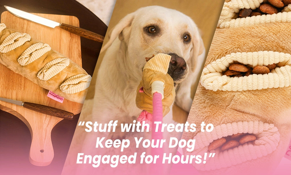 "Sick of Soft Toys That Do Nothing?The Baguette Plush Toy Brings Crunch, Tug & Play All in One! 🥖🐾"