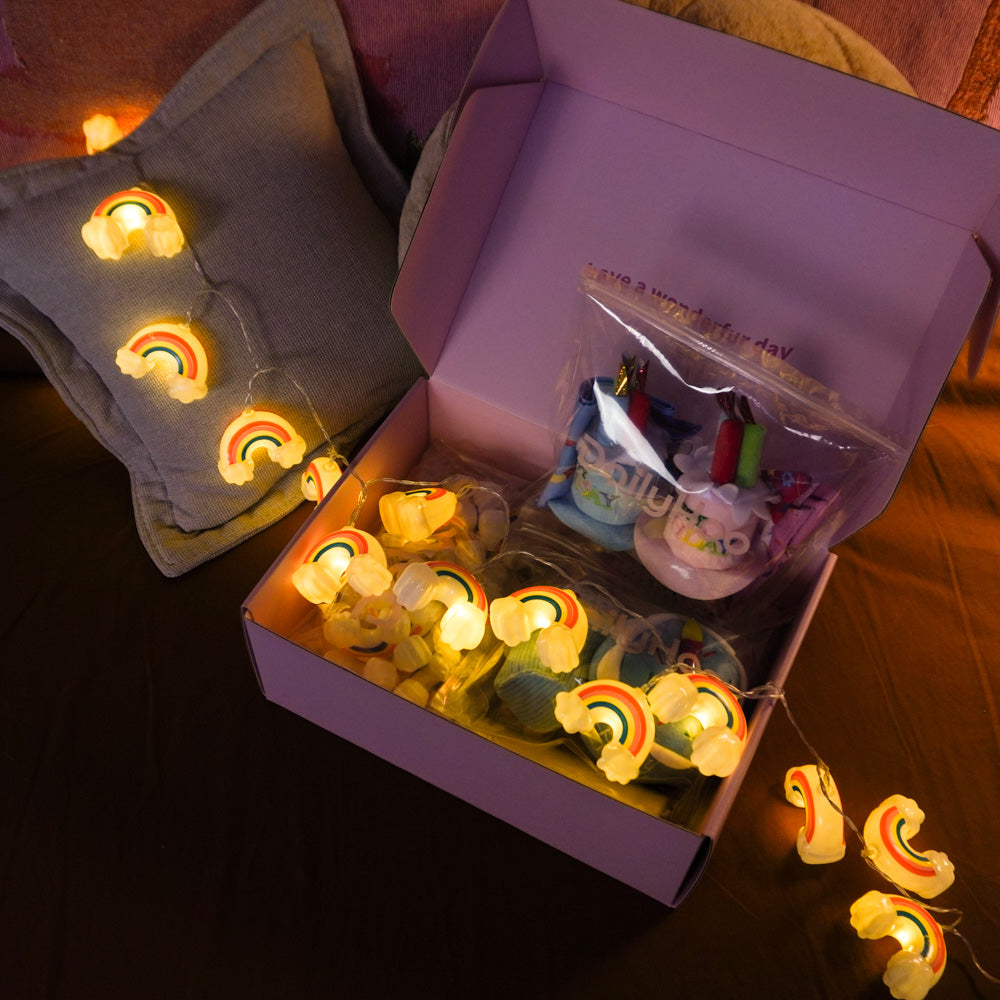 - 1 × Rainbow String Lights – Brighten up the party with colorful, glowing lights.